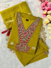 New Function Wear Off White Color Embroidery Work Designer Straight Kurta With Trouser n Dupatta Set